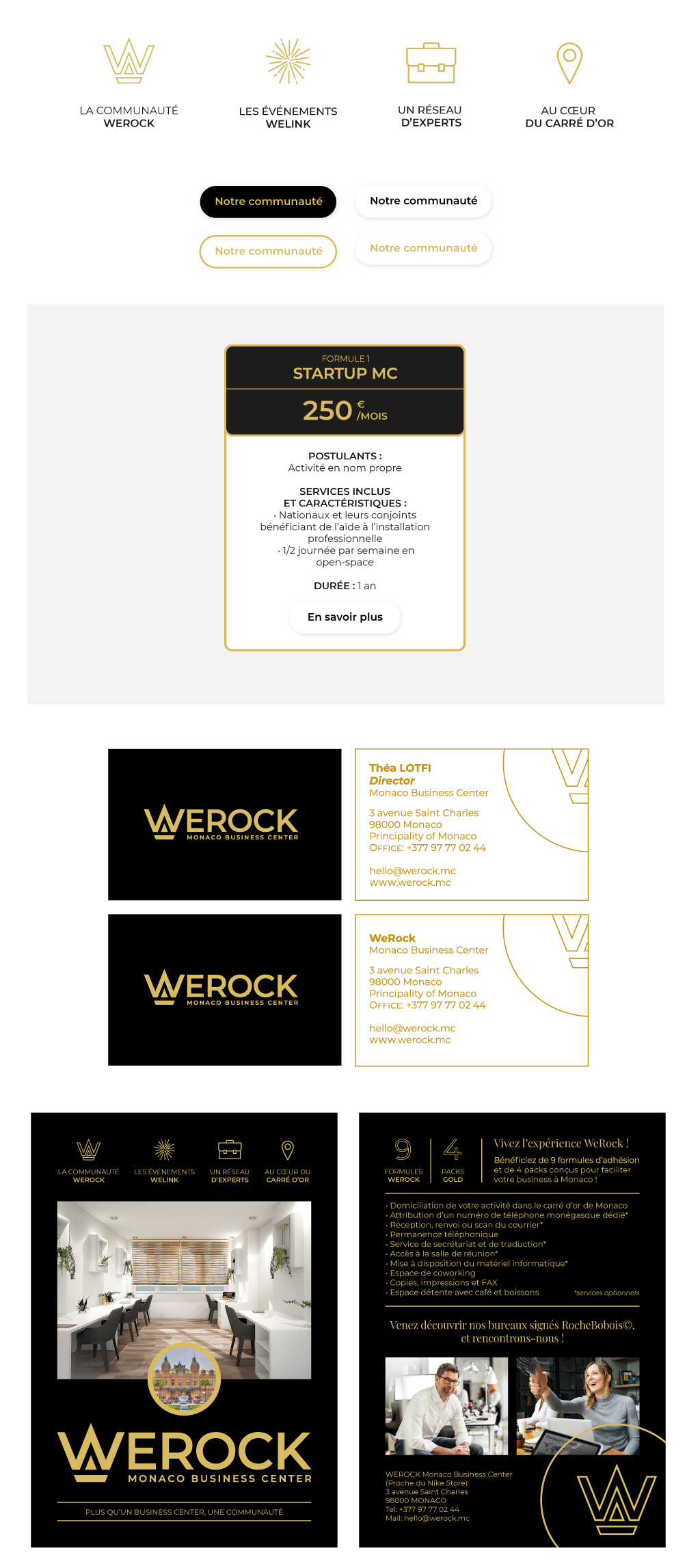 WeRock a fait appel à Aïtana Design pour construire l’identité visuelle de son nouveau business Center, situé au coeur du carré d’or à Monaco. En lien avec le travail de décoration d’intérieur signé Roche Bobois, l’identité est née.