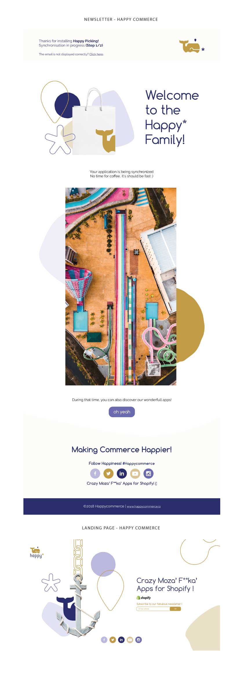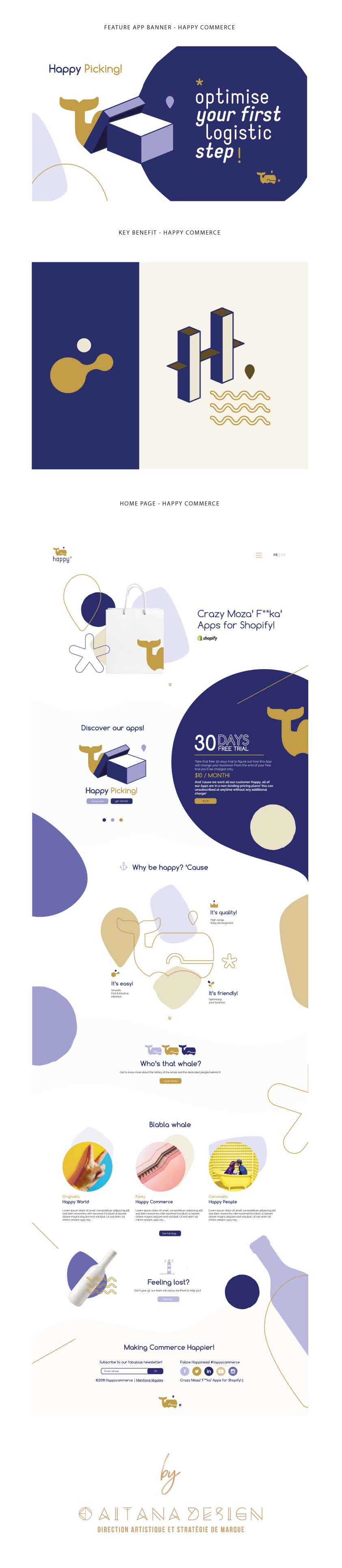 Nouvelle marque, Happy Commerce vient de se lancer sur le marché des applications de la plateforme Shopify. Ils créent et proposent des applications afin d’aider les e-commerçants à développer leurs activités de vente en ligne avec Shopify. Vous pouvez en savoir plus sur Happy Commerce sur le site web officiel ou sur la plateforme Shopify Partners. Ils ont confié la stratégie d’image de marque à Aïtana Design pour leurs lancements. Merci à eux pour cette belle collaboration !